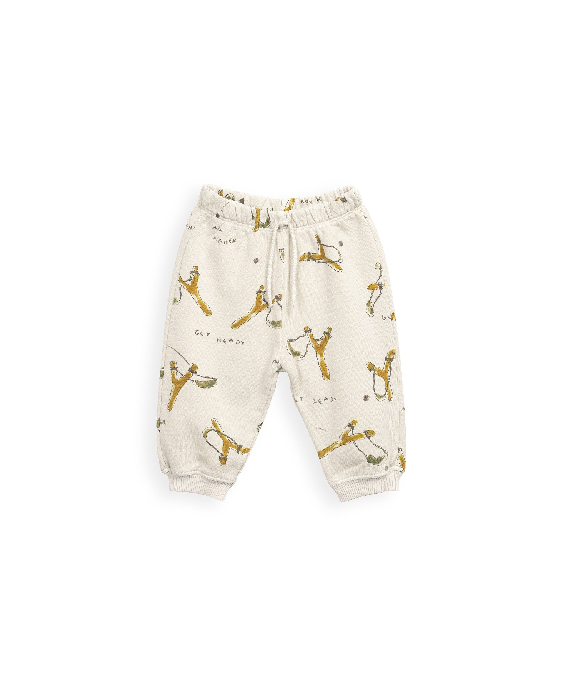 Pantalone in cotone doppia garzatura con vita e polsini elastici. Stampa fionde PLAY UP Rif. 1an11604