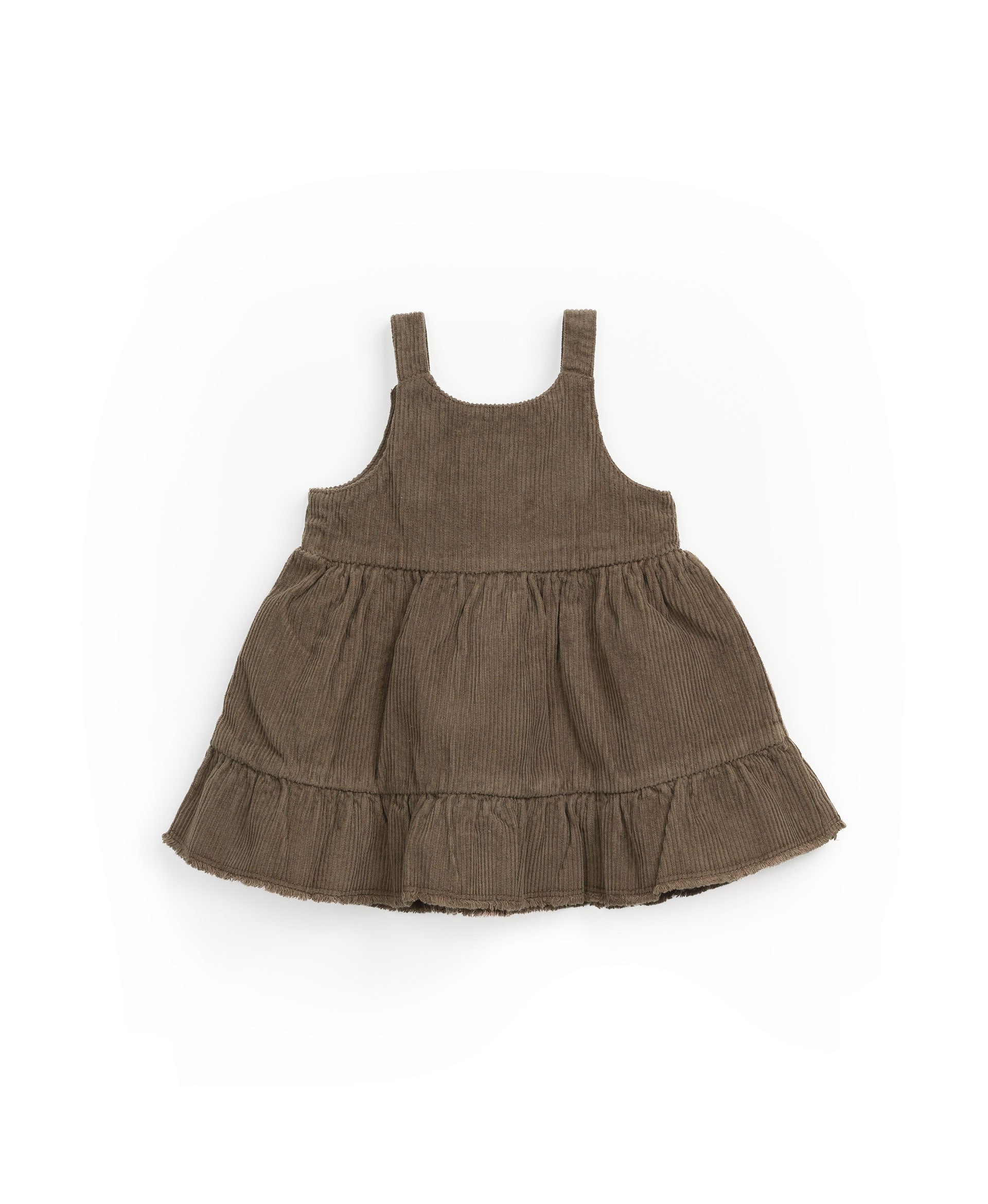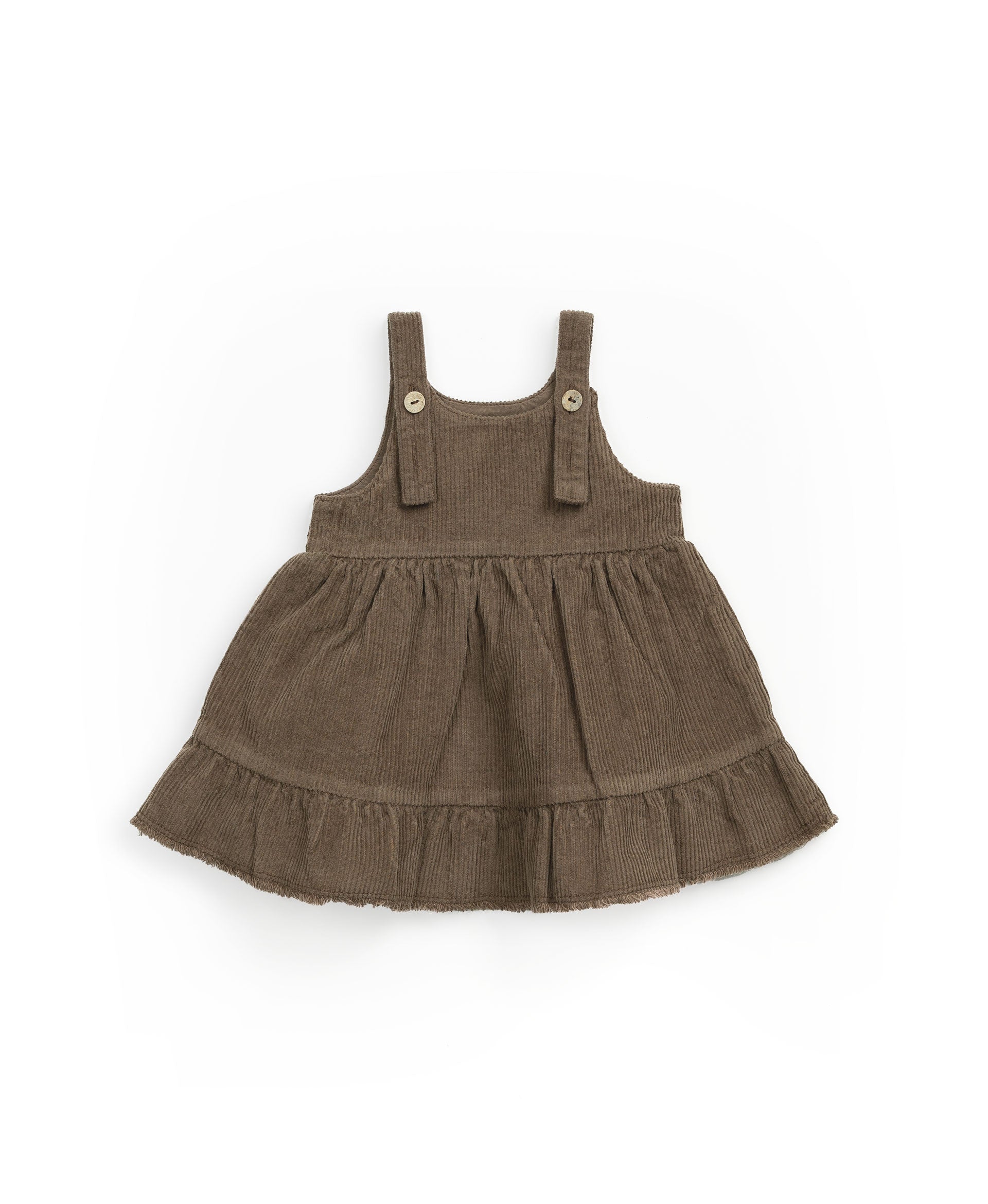 Abitino scamiciato in velluto a coste con bottoncini in legno sulle bretelline con doppia regolazione. PLAY UP Rif. 2an11451