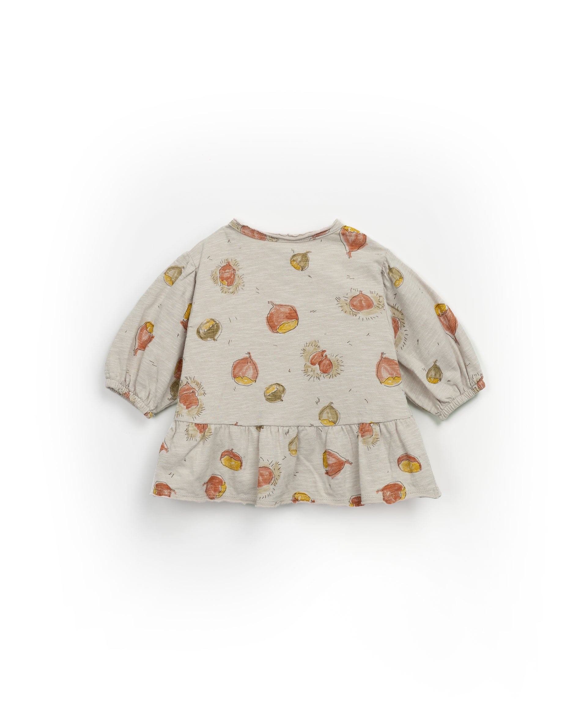 T-shirt bimba con volant sul fondo in cotone con fantasia castagne. PLAY UP Rif. 2an11005