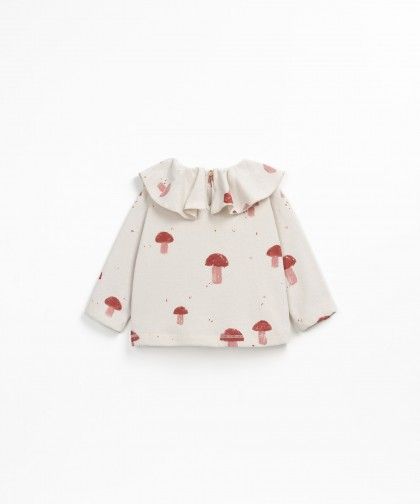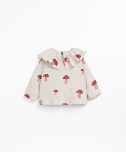 T-shirt con colletto grande, taglio svasato simil blusa in cotone caldo con motivo funghi. PLAY UP Rif. 2ap11004