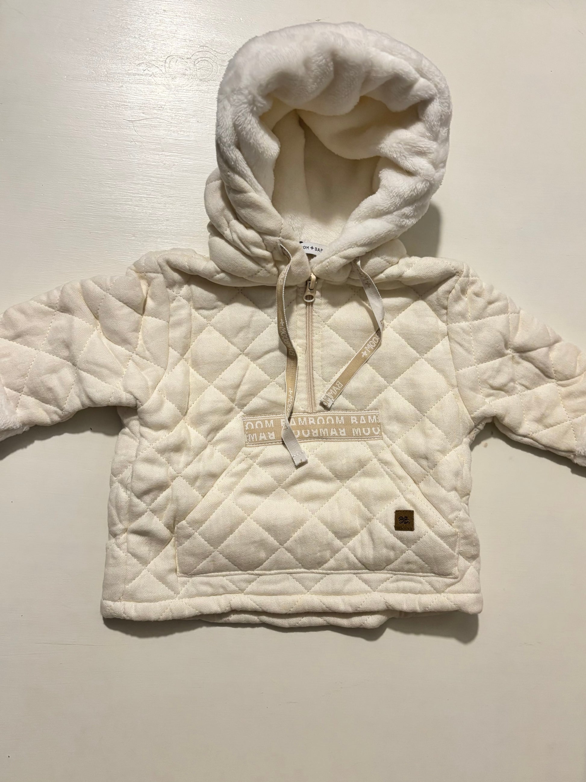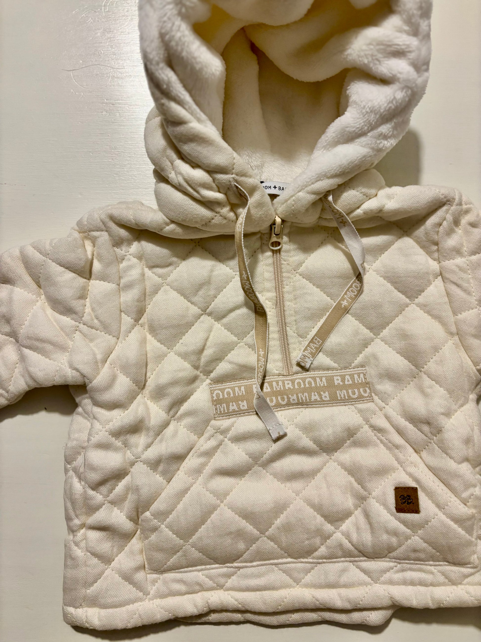 Felpa trapuntata con apertura a metà con zip, logo sul davanti e pelliccetta all'interno del cappuccio. BAMBOOM Rif. 506