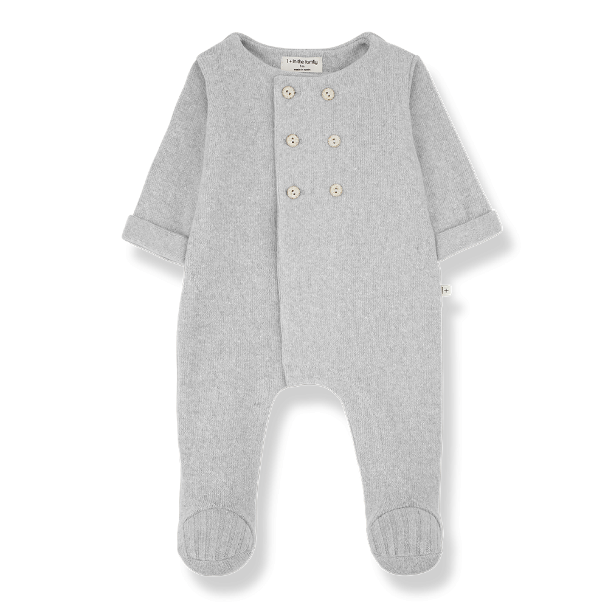 Tutina intera con piedi in cotone caldo, con bottoni in legno sul davanti modello doppio petto e bottoni automatici sul fondo per un apertura totale. 1+IN THE FAMILY Rif. ABEL