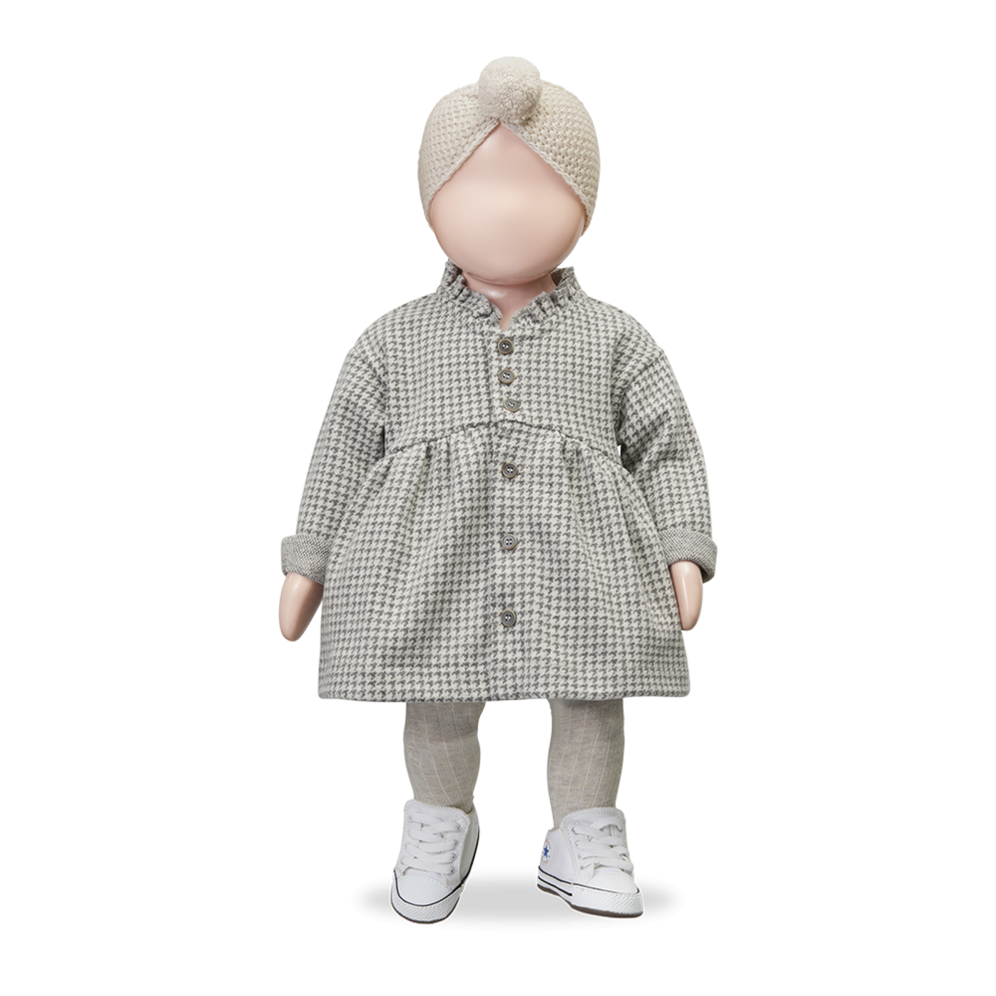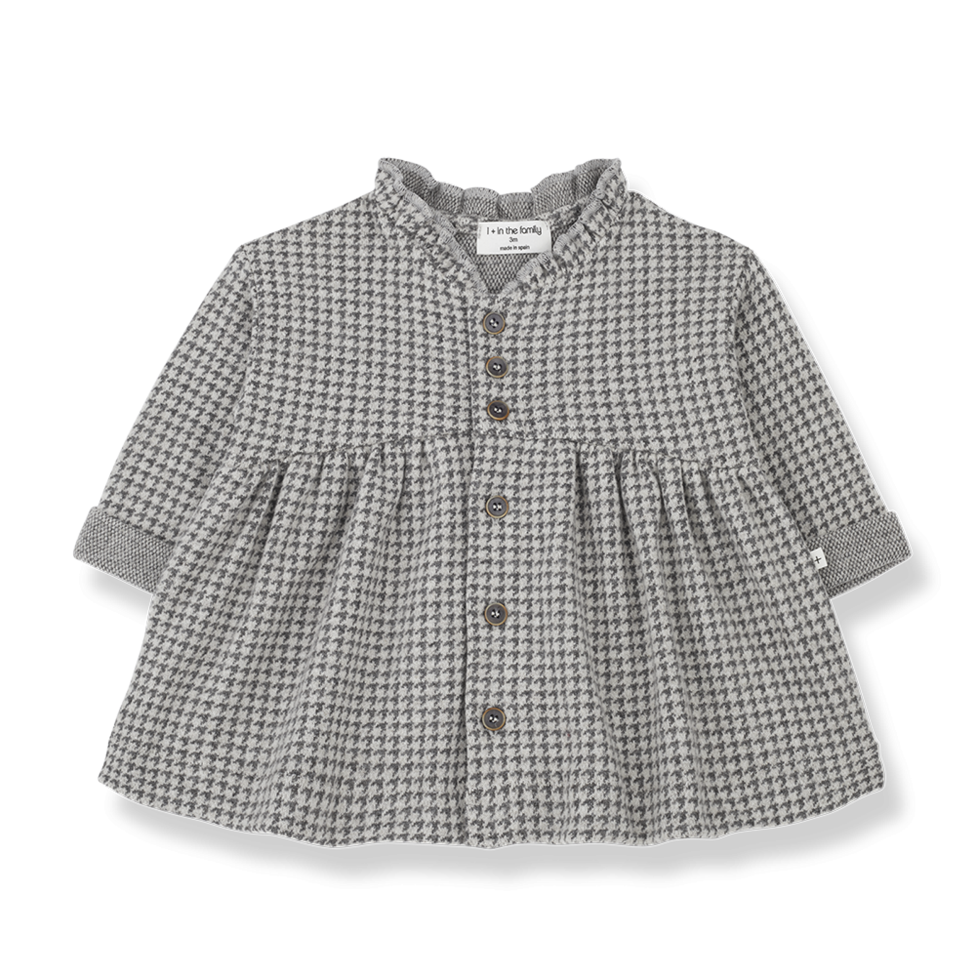 Abito in cotone caldo con colletto arricciato e bottoni sul davanti per un apertura totale. Fantasia pie des poul. 1+ IN THE FAMILY Rif. GEMMA