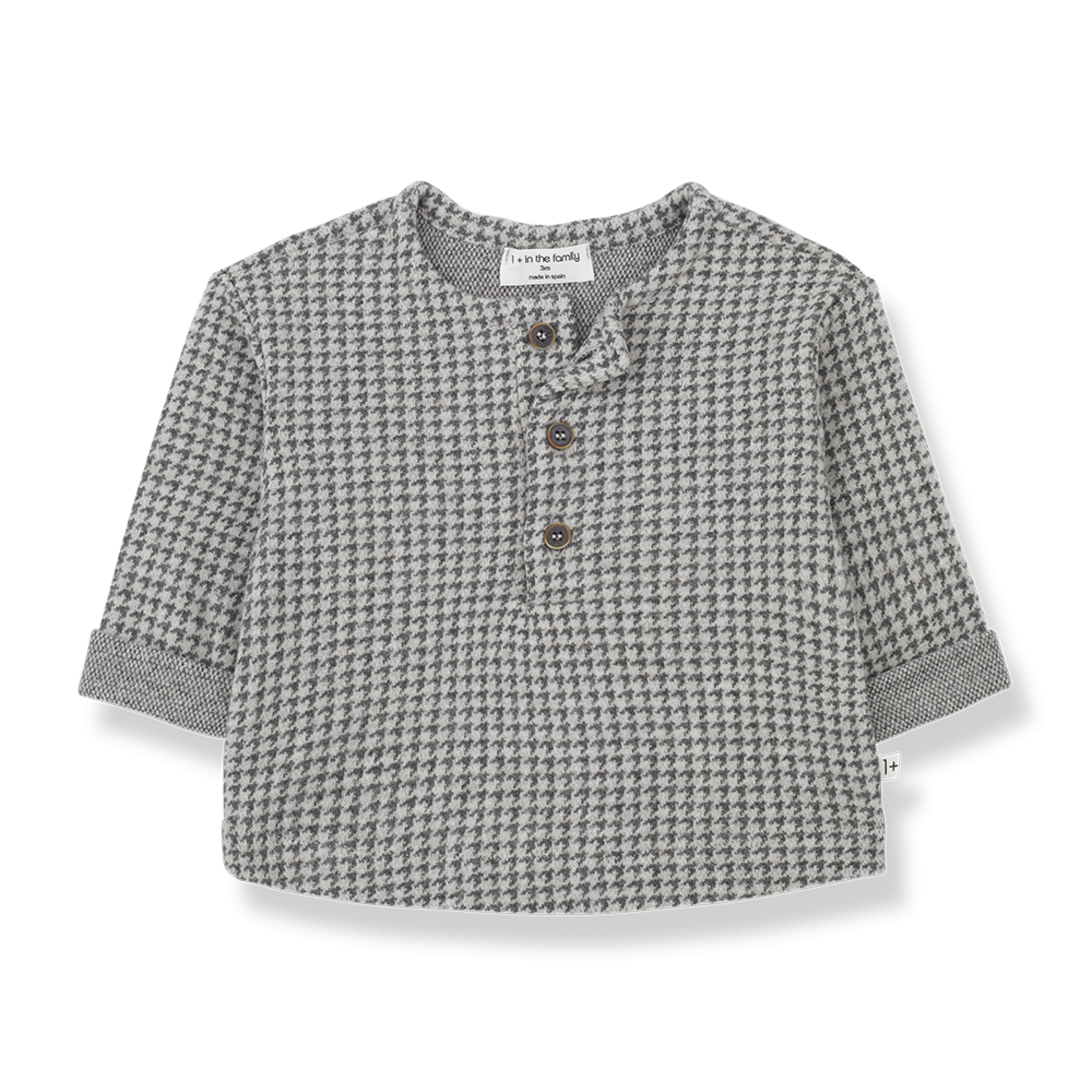 Camicia serafino con tre bottoni sul davanti, in cotone caldo con fantasia pie des poul. 1+IN THE FAMILY Rif. IGNASI