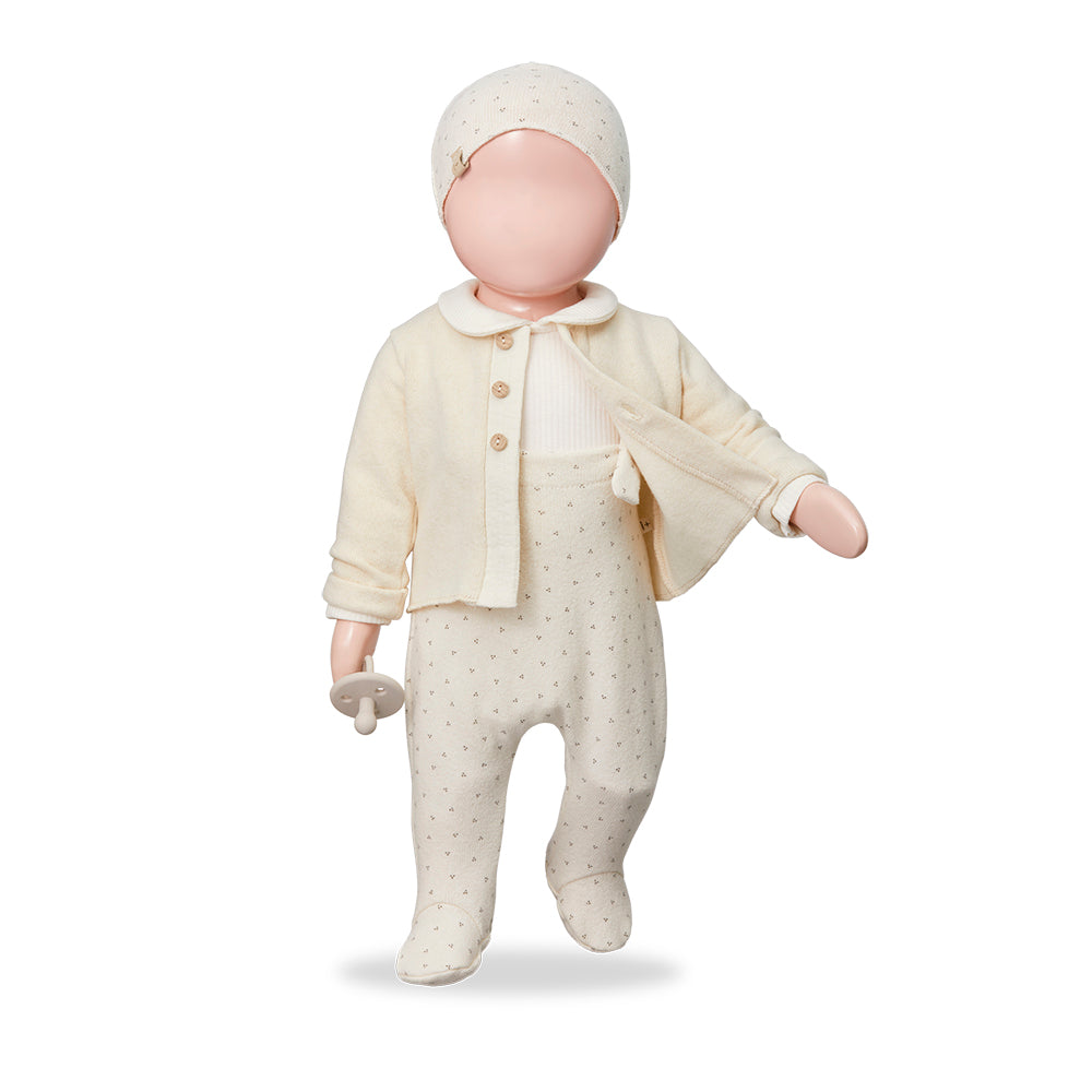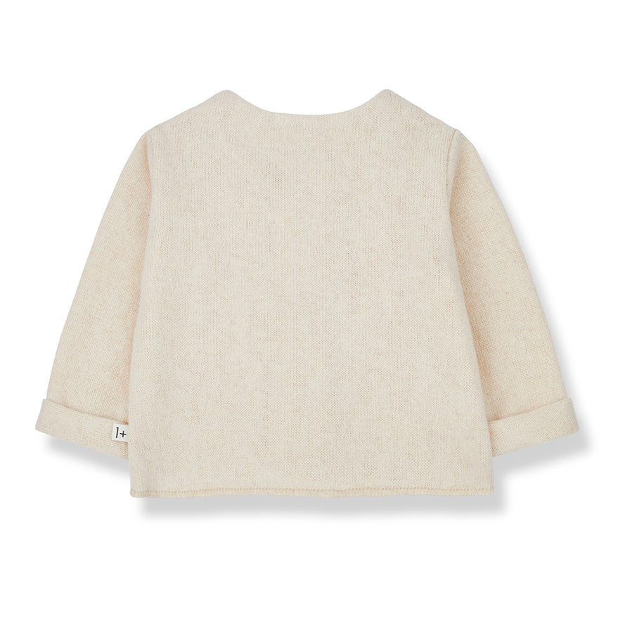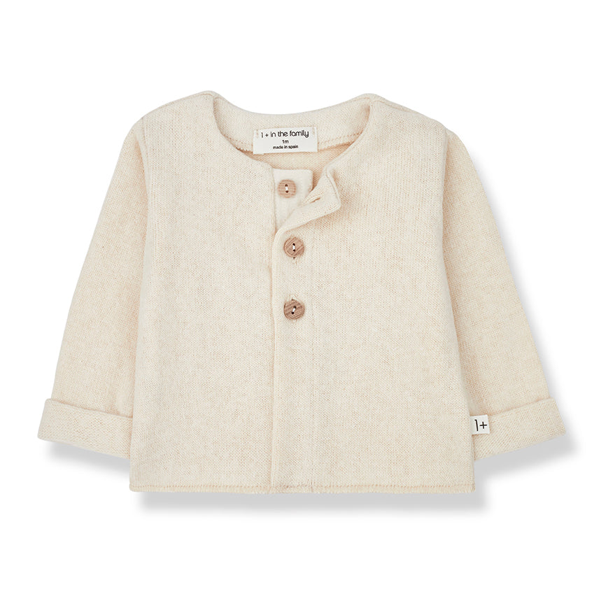 Cardigan in cotone caldo girocollo, dettaglio in lino nell'apertura con tre bottoni in legno. 1+ IN THE FAMILY Rif. JOLIE