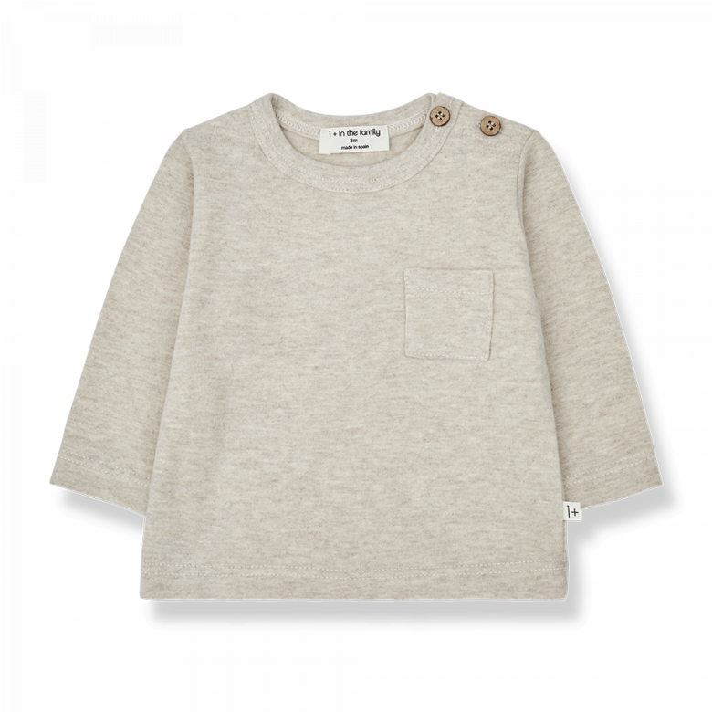 T-shirt in cotone caldo con bottoncini in legno laterali al collo. 1+IN THE FAMILY Rif. ORIOL