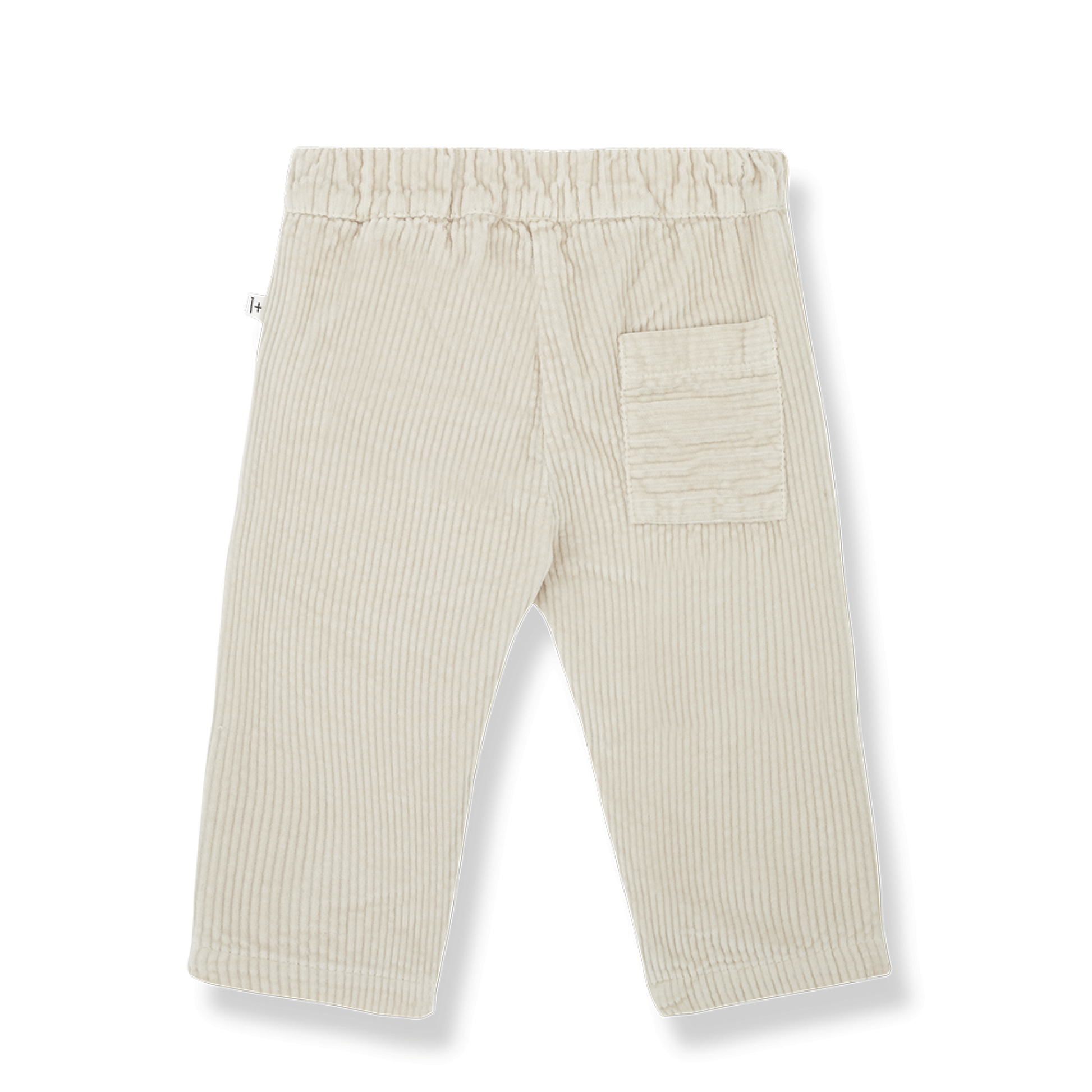 Pantalone in velluto a coste, gamba dritta con vita elastica e bottoni in legno applicati. Foderato all'interno. 1+IN THE FAMILY Rif. OVIDI