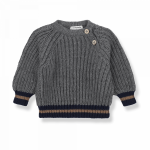 Maglione girocollo super morbido e caldo con bottoncini in legno laterali collo, dettagli righe blu e camel sui polsini e sul raglan.Composizione:52% acrilico 38%polyamide 10%alpaca 1+IN THE FAILY Rif. PABLO