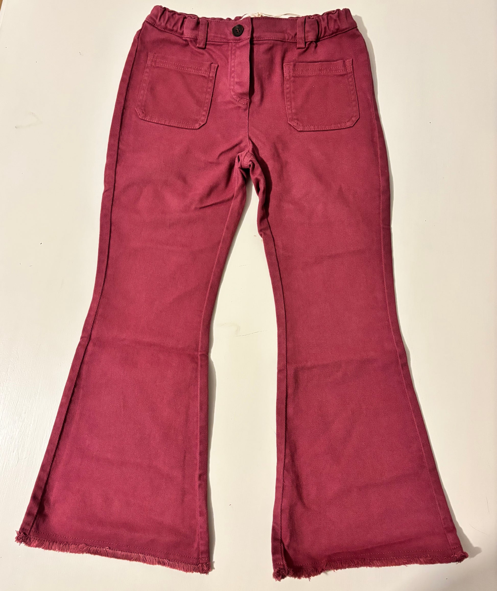 Pantalone twill bimba a zampa, sfrangiato in fondo. Allacciatura con bottone e coulisse interna regolabile. ZHOE&TOBIA Rif. PJS7