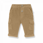 Pantalone in velluto a costine fine modello cargo con tasconi laterali imbottito, vita elastica e bottoni in legno applicati. 1+IN THE FAMILY Rif. RAUL