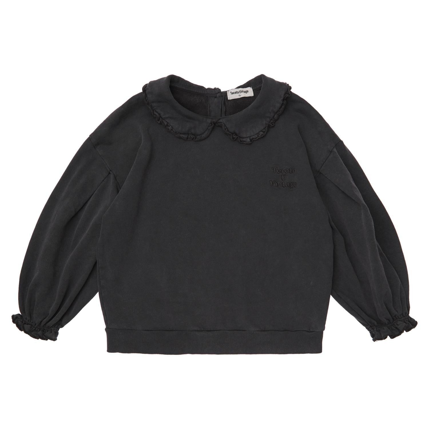 Felpa con colletto e maniche a palloncino , in caldo cotone. Bottone il legno dietro al collo.Tocoto Vintage Rif.w51923k